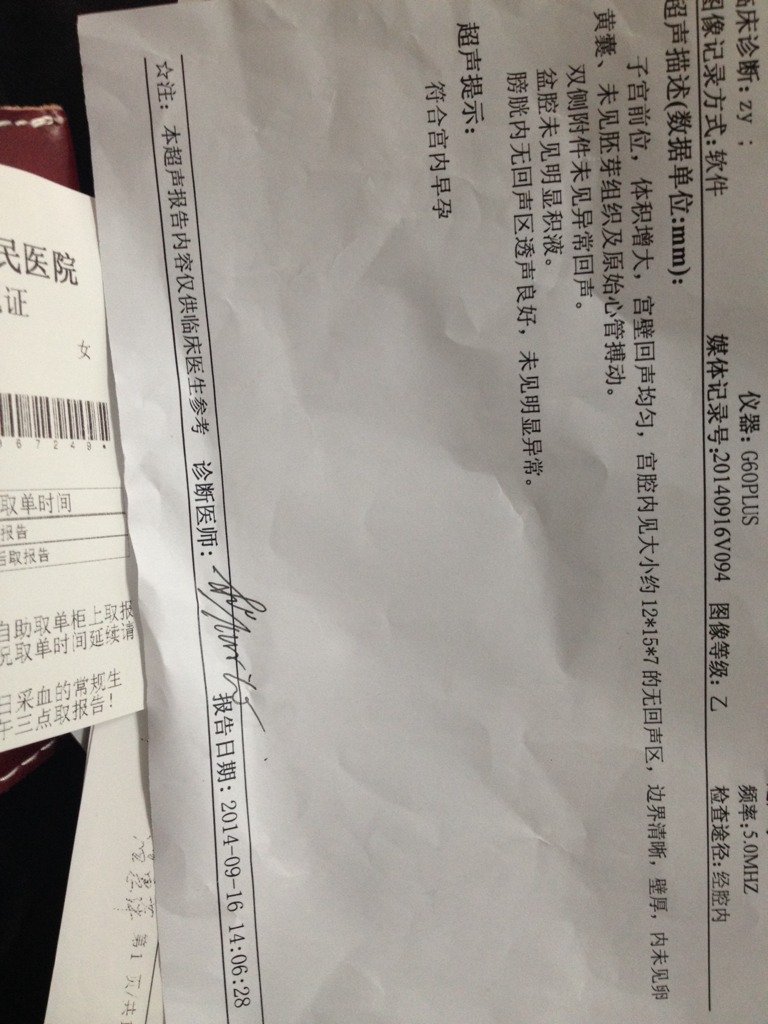 早上起床上厕所厕纸上有点血水,去医院做了阴超,拍了照片 医生说我三十几天胎儿有点小 未见卵黄囊和胚