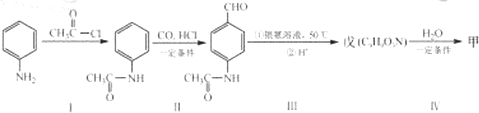 (1)氨基显碱性、羧基显酸性,所以甲中显酸性的官能团是羧基,故答案为:羧基;(2)a.该分子中C、N原子个数分别是7、5,所以分子中碳原子与氮原子的个数比是7:5,故正确;b.含有苯环的有机物属于芳香族化合物,该分子中没有苯环,所以不属于芳香族化合物,故错误;c.氨基能和酸反应、崭锈氯原子能和碱溶液反应,所以该物质既能与盐酸又能与氢氧化钠溶液反应,指孟细故正确;d.该分子中含有N原子,不属于苯酚的同系物,故错误;故选ac;(3)丙的同分异构体丁中含有、在稀硫酸中水解有乙酸生成,说明丁含有酯基,丁为乙酸某酯,所以丁的结构简式为,故答案为:;(4)苯胺和CH3COCl发生取代反应生成,在一定条件下发生加成反应生成,和银氨溶液发生氧化反应然后酸化得到戊,戊的结构简式为,戊发生水解反应生成甲; ①通过以上分析知,步骤Ⅰ的反应类型是取代反应,故答案为:取代反应; ②氨基不稳定,易被氧化为硝基,为保护氨基,所以设计步骤Ⅰ和Ⅳ,故答案兔剩为:保护氨基; ③步骤Ⅳ发生水解反应,反应的化学方程式为,故答案为:.