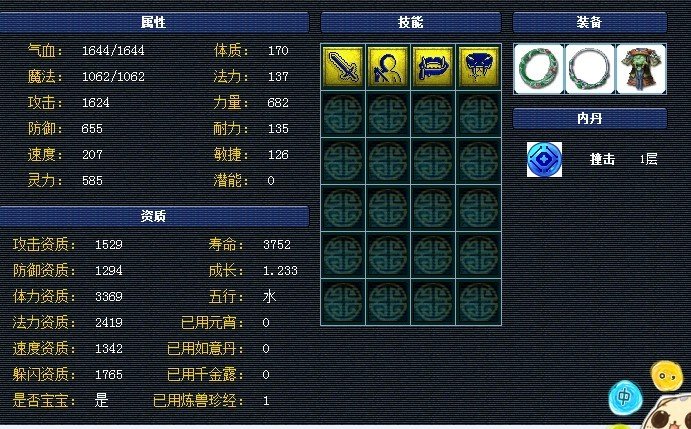 100:100是不是说险队100W梦幻币等于100元人民币啊 如果是这样的话,你这区扬糟锈是新区,并且还很新,这个BB起码也要300元,但,是建议后期BB加点可以加点体,把血长点,现在的血有点趋高少!!!!