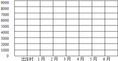 下表是一名婴儿出生时以及一个月、二个月…六个月的体重记录,时 间 出生时 一个月 二个月