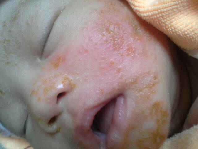 这多是小儿湿疹,是由于孩子对蛋白质过敏引起的,婴儿时期的湿疹主要是对奶粉或母乳中的蛋白质过敏引起的,如果不是很严重,可以不用治疗,1岁半以后会自然好转。如果湿疹严重,可以涂湿疹膏来缓解症状。但是含有激素成分药膏不可以长期使用。等湿疹好点以后。用氧化锌软膏每天给宝宝擦。这就需要妈妈在护理方面非常注意。
