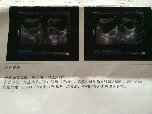 你好,从这个超声检查的结果来看,宫腔内应该是有一点积液,厚0.47厘米。宫颈处的那个无回声应该是宫颈纳囊,0.8X1.06厘米。这个情况应该不严重的,你可以定期复查,或者在医生的指导下积极治疗。纳囊的治疗很简单,不需要住院。
