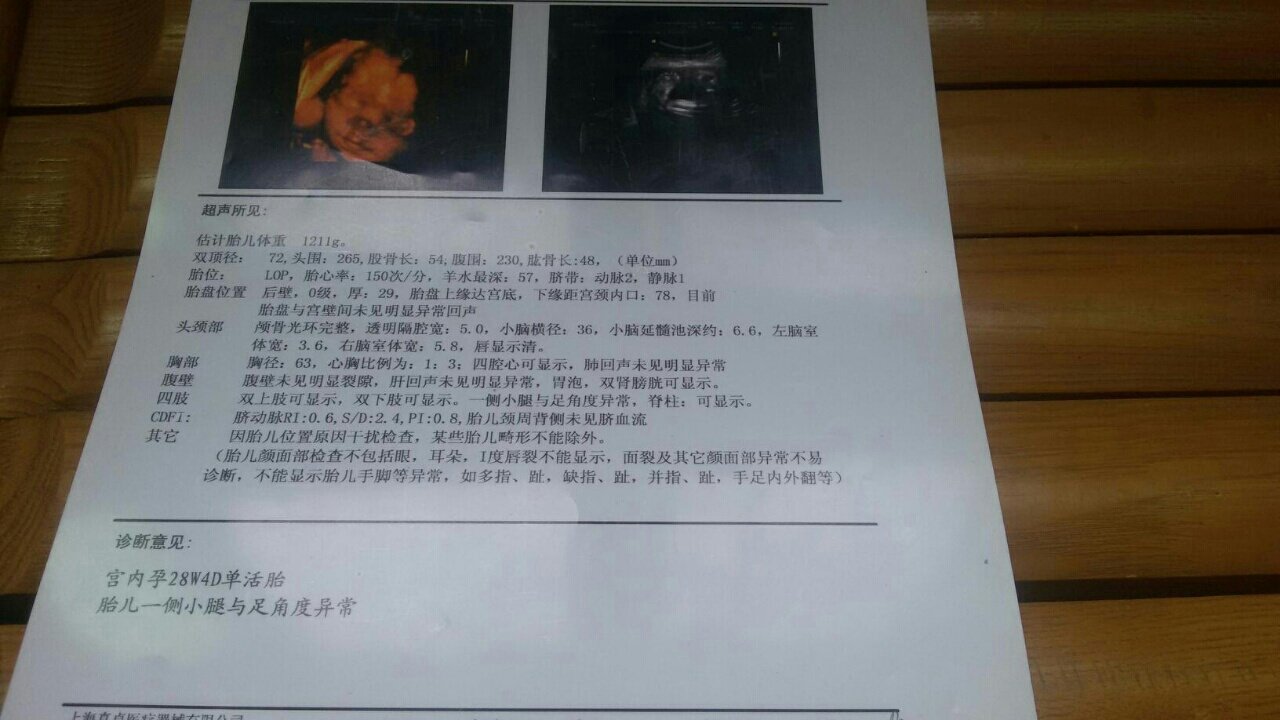 怀孕28周,胎儿一侧小腿与足姿势异常,唐氏筛查是低风险,这孩子能要吗?有点担心 怀孕28周,胎儿一侧小腿与足姿势异常,唐氏筛查是低风险,这孩子能要吗?有点担心 点击展开 晓华_KCBK 2016-07-04 11:04 为您推荐: 其他回答 不清楚!! 美美(>﹏<) 2016-07-04 11:15 出生会有点缺陷,其他没什么问题,建议不要 Ե 2016-07-04 11:15 唐氏筛查主要看智力方面的问题 Ե 2016-07-04 11:11 问医生。。 187*****413_QjpI 2016-07-04 11:08 祝宝妈好孕 天天开心,天天快乐 2016-07-04 11:07 加载更多 相关问题 唐氏筛查低风险B超胎儿左侧小腿似见与足成异常怎么办 怀孕21 周初!最近小腿会抽筋~半夜抽有时早上刚醒也抽!怎么回事!是缺钙还是我走路太多引起的!真疼 我今天怀孕26周了,但是从26 周开始就开始小腿和脚都肿了,这正常吗?有什么办法可以消肿?