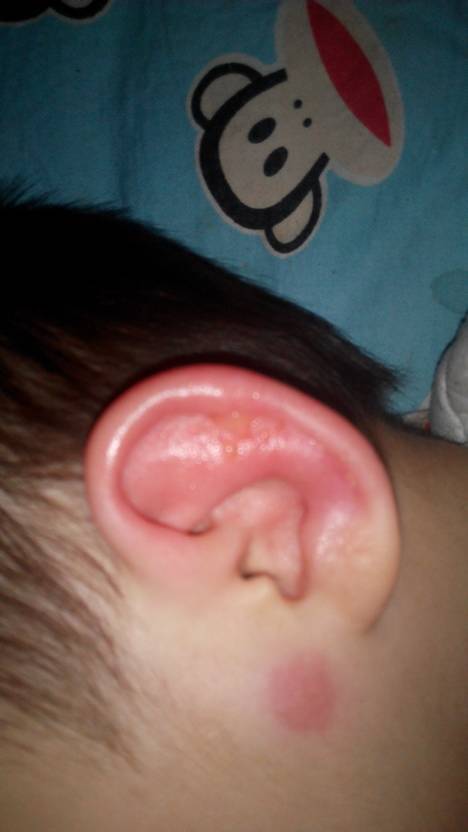 宝宝耳朵留出水,干了是黄色的红肿痒是怎么回事啊,下面有图片麻烦知道的告诉一下,用的什么药谢谢 点击展开 匿名用户 2014-05-01 23:45 为您推荐: 其他回答 病情分析: 小儿,有耳缘的皮肤红肿。 指导意见: 从图片上看,除了耳缘的皮肤红肿,还有耳前也可见到充血性的皮诊,考虑为过敏所致,是否使用过什么药物所致,建议可以局部使用皮炎平外用。 匿名用户 2014-05-02 09:46 相关问题 宝宝耳朵上起了好多小颗粒,还伴有黄色的水是怎么回事? 宝宝耳朵里面是干的!外面用绵签一擦确实黄色湿的!这是为什么啊?! 两个月宝宝耳朵里流黄色水水,昨晚睡觉总是闹,还呕吐