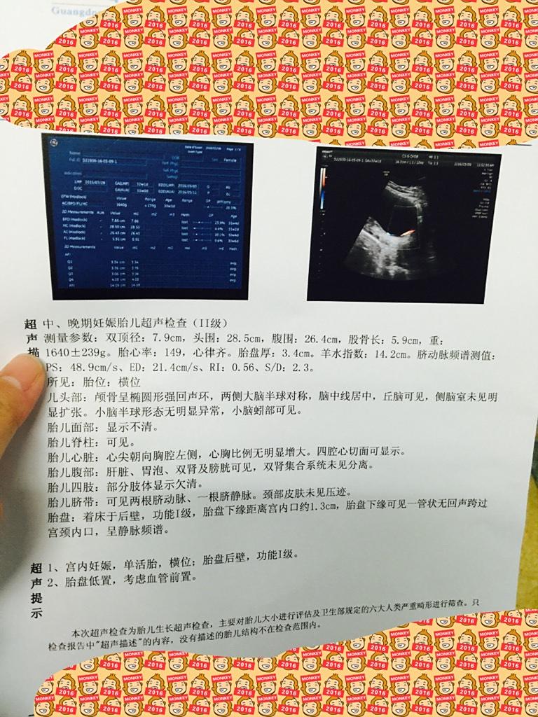 32周加3天,前天bc医生说胎盘低,胎儿小两周,血管前置,好害怕,医生说的好恐怖,万一爆了宝宝就没 32周加3天,前天bc医生说胎盘低,胎儿小两周,血管前置,好害怕,医生说的好恐怖,万一爆了宝宝就没了,问了医生她说到37周剖出来,我就是担心这段时间有什么事,天天担心,应该注意什么! 点击展开 👶🏼甘宝 2016-03-11 15:36 为您推荐: 其他回答 放宽心。。 两宝妈妈咪 2016-03-11 21:47 多注意休息,不要走动那么多,上厕所注意点 Wrddse 2016-03-11 17:21 多休息,长检查着点 石头_GDzN 2016-03-11 17:11 多休息,。,。 **旲&~ 2016-03-11 17:00 你这样心急,给自己压力,情绪波动太大对宝宝也不好 怀孕的虫子 2016-03-11 16:41 加载更多 相关问题 三个半月了小腹痛,没流血前两天医生说我胎盘前置 好害怕呀怎么办?我真的很爱宝宝,希望他好好的 怎么办 今天碰到个医生说了很恐怖的话 我末次月经10月25 刚才照B超13周加 上次1月13号照 B超提示:孕30周加3天,胎儿左侧侧脑室三角区内径0 7cm,胎盘下缘鄂覆盖宫颈内口,羊水分布较局