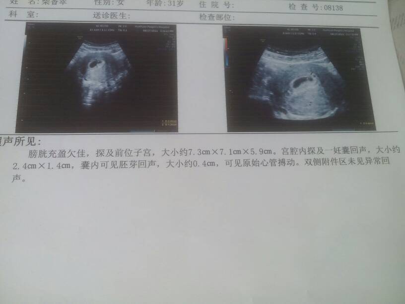 亲们,这是快两个月的B超单,有人说看数据能看出男孩女孩 有懂的吗能帮忙看一下吗,谢谢啦 亲们,这是快两个月的B超单,有人说看数据能看出男孩女孩 有懂的吗能帮忙看一下吗,谢谢啦 点击展开 牵手一辈子_Ddr7 2014-11-20 14:05 为您推荐: 其他回答 哦哦,。等有时间来大同 马欣怡 2014-11-20 20:21 内蒙商都的 马欣怡 2014-11-20 17:53 我也是内蒙的 马欣怡 2014-11-20 17:48 我内蒙内蒙商都的 马欣怡 2014-11-20 17:47 哦哦,你是哪里的 马欣怡 2014-11-20 17:45 加载更多 相关问题 听说B超单上的某数据能看出男孩女孩,是真的吗? 请问宝妈有看的懂的吗?这是B超单的数据 BPD1 92CM FL0 81 CM HC 7 26CM AC 5 91CM 有能看出男孩女孩吗 B超单20*18*12数据11月3日照的 9月10日末次月经,是男孩女孩,谁会看!