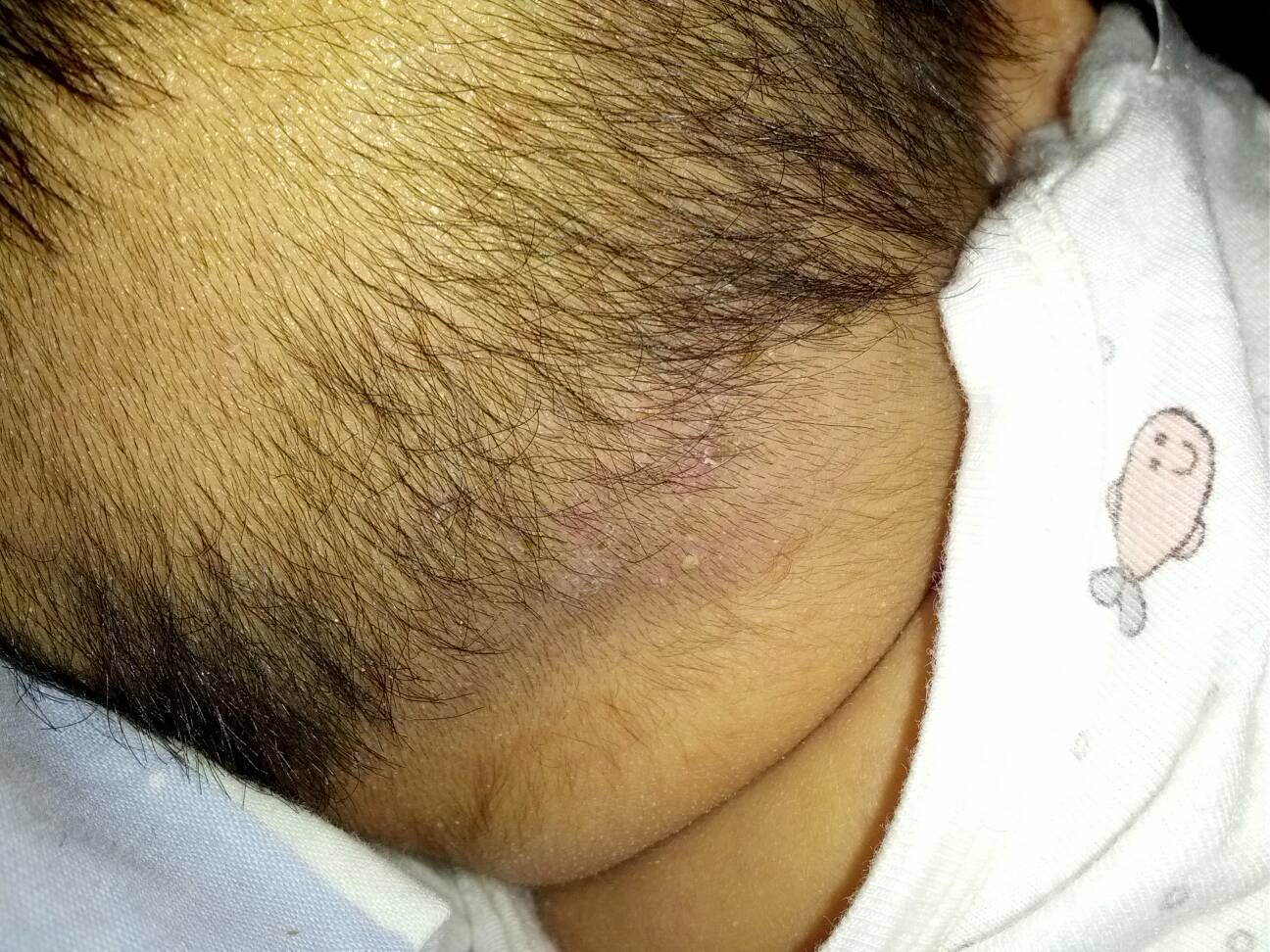 请教各位亲,两个月宝宝脑后长了好几个疙瘩,开始是白头,后来结痂,比绿豆略小,好像有点痒因为她老是在