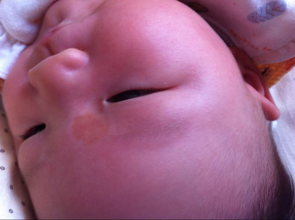宝宝现在65天,眼角的斑在20几天显现出来,现在颜色越来越深,就像图片显示的,请问医生这个是什么斑