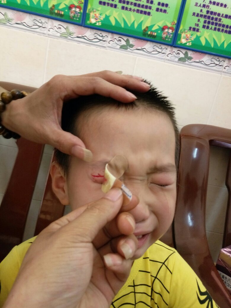 我们是来自安徽农村!在厦门误工,孩子在海沧区领上创意幼儿园受伤了,右眼侧逢了三针,以后有伤疤,只带