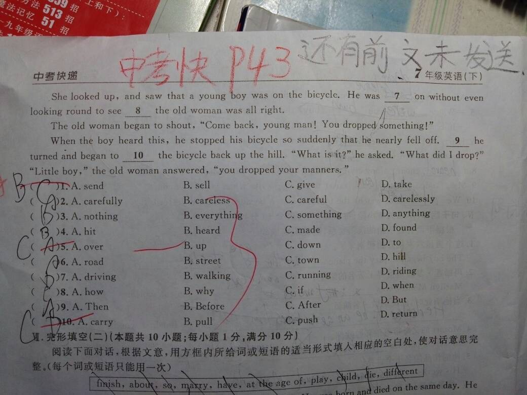 初一英语,快递,孩子的练习题,完型填空,1,5,10,做错了,请教一下孩子为什么过错?他应 初一英语,快递, 孩子的练习题,完型填空,1 ,5 ,10 ,做错了,请教一下孩子为什么过错?他应该在哪方面加强学习呢? 点击展开 匿名用户 2015-05-23 20:46 满意回答 其实这都是因为单词的意思他蒸命不明白震源,所以才选错。 初中英语,贵在基础,最基础的就是单词。 一定要监督孩子医竞肿背好单词! 匿名用户 2015-05-23 22:17 宝宝知道提示您:回答为网友贡献,仅供参考。 相关问题 初一英语,快递,46完型填空,孩子的练习题,7,10,错了 孩子已经改过来了,请问这题孩子说还 在深圳外国语学校,小孩想初一英语,去哪学好? 小孩上的,重庆初一英语补习会话练习我们又不懂那家强些?