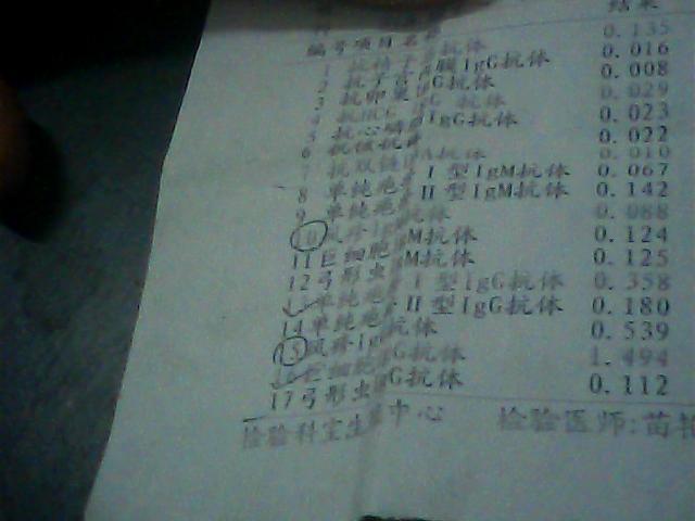你好大夫帮我看看化验单这情况能怀孕吗,如果怀孕后能要吗,对胎儿有什么影响 谢谢 点击展开 匿名用户 2014-04-25 19:24 为您推荐: 其他回答 病情分析: 您的优生系列检查看可能之前接触过风疹病毒,要及时观察,必要的情况下可以及时抗病毒治疗 指导意见: 如果已经怀孕及时观察就可以了,不能抗病毒治疗,及时观察看看 匿名用户 2014-04-25 20:24 相关问题 大夫你好,麻烦帮我看看我儿子今天的化验单看看有什么问题吗 你好!我怀孕17周了今天早上上厕所见红了,肚子也不疼,今天去医院检查B超大夫说没事,请问用不用吃保 你好能帮我看看这张化验单我的卵泡发育怎么样吗?什么时候排卵啊?
