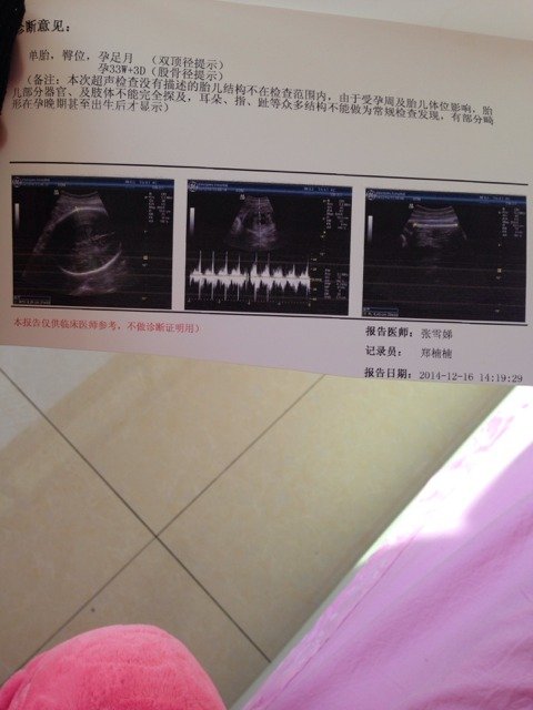 B超单可以看出胎儿是否入盆了吗?宝妈们帮我看一下 B超单可以看出胎儿是否入盆了吗?宝妈们帮我看一下 点击展开 说好de幸福 2014-12-25 11:00 为您推荐: 其他回答 到预产期就可以 ☆随☆风 2014-12-25 18:16 B超看不出来入盆的,只能摸 爱宝宝,爱老公 2014-12-25 11:50 你的是臀位怎么入盆?是头位才入盆的吧!生的时候剖腹产吧! ☆随☆风 2014-12-25 11:30 你好,你这个B超是臀位,不太建议顺产,不要等到入盆,可以早点剖腹产。 萧萧秦风87 2014-12-25 11:28 医院没说吗? ☆随☆风 2014-12-25 11:26 加载更多 相关问题 胎儿是否入盆从B超单看得出来吗? 我昨天到检查照的b超,没有显出胎儿大小,感觉b超显示的好简单,请医生和了解的宝妈看看,这些数据正常 宝妈们问一下你们怀男孩的时候b超单子胎儿的心跳都是多少啊!