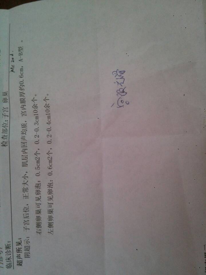 月经周期35 36天,下次月经前17天卵泡0.6CM2个 然后好多小卵泡,是不是多囊卵巢? 点击展开 匿名用户 2014-03-05 12:40 为您推荐: 其他回答 病情分析: 由于每个医院的实验设备,试剂不同,正常参考值也有一定的差异, 指导意见: 你的检查结果,建议咨询你的经治医生。具体诊疗请一定到医院在医生指导下进行,祝健康。 六飞烟_TKY4 2014-03-05 14:33 相关问题 我月经周期为25天,在月经17天时查卵泡大小为0 7*0 6,是否正常?还有在月经期卵巢内还有卵泡在生长吗? 患有多囊卵巢,月经过了12天,还没检测到卵泡,月经周期大概35天,什么时间是排卵期上次月经是3号开始的 多囊卵巢,月经周期是三十四天,两测有十个以上小卵泡,怎么才能怀孕呢?