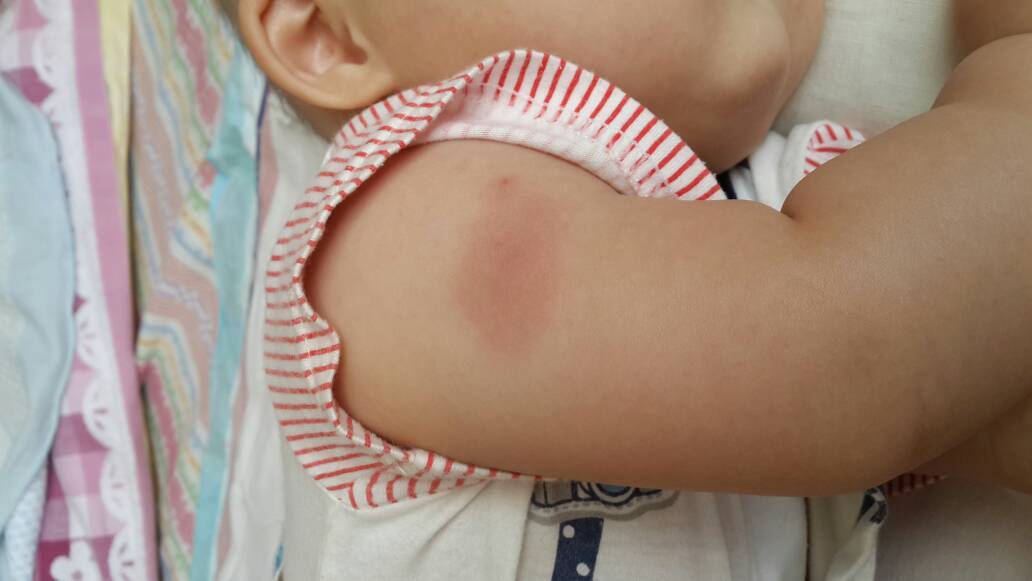 宝宝六个月,昨天打预防针回来,晚上洗澡了,发现针眼旁边有红肿,今天面积变大了,怎么回事?
