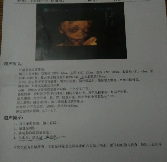 25周做的三维彩超,医生说羊水多了,有可能是畸形造成的,让我去市里面的医院做进一步检查,我有点害怕 25周做的三维彩超,医生说羊水多了,有可能是畸形造成的,让我去市里面的医院做进一步检查,我有点害怕,都不敢去,又怕宝宝真有点什么问题该怎么办?有经验的宝妈们帮忙看看,我该怎么样才能羊水不多呢?? 点击展开 柠夏丶初开♪ 2014-09-15 21:31 为您推荐: 其他回答 你平时爱吃甜吗? 宁宁妈咪 2014-09-15 21:52 少喝点水和汤,这个时期有可能是这样的,也许你下次去就正常了我之前也这样 宁宁妈咪 2014-09-15 21:47 你羊水多?唉我的羊水少。。怎么办。 向幸福出发_CLUz 2014-09-15 21:42 相关问题 请问哈医生这是从四维检查羊水多和后两次检查的B超也多…请问医生小孩畸形高吗?宝妈你们有同样的经历 31+4天了,羊水太少了,才81对宝宝有影响吗?医生说少余80宝宝可能畸形,我好担心,有没有宝妈跟