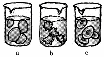 人体正常红细胞是两面凹陷的圆饼状,现将人体哺乳动物的红细胞分别浸入下列a、b、c三个不同浓度溶液的烧杯内,一段时间后,实验结果如图所示,则a、b、c溶液浓度大小比较正确的是 [ ] A.a>b>cB.a>c>bC.a