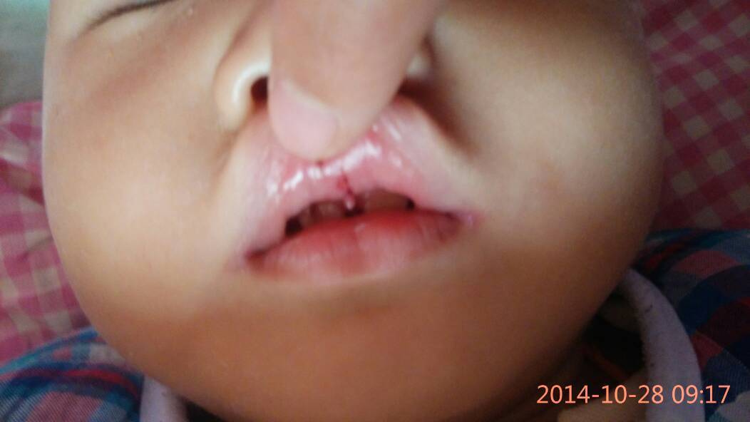 我家宝宝十一个月了昨天晚上磕到嘴了,上嘴唇和牙龈连的那块肉给断了,怎么办,急急
