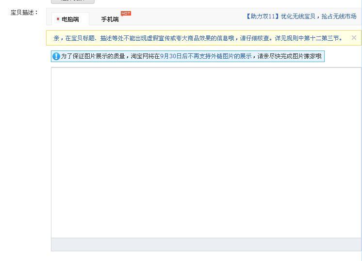 淘宝宝贝详情页HTML编辑器不显示,求解,急急急! 换了浏览器也不行,不知道是什么问题,在别的电脑上可以,是少什么软件吗 点击展开 匿名用户 2014-10-12 10:22 满意回答 那估计就是您兵吉自身电祸扬串脑的问题了。。。 也有可能是软件什么的冲突。。。且亲 匿名用户 2014-10-12 14:22 宝宝知道提示您:回答为网友贡献,仅供参考。 为您推荐: 其他回答 换个电脑试试呗 颜海镜 2014-10-12 10:34 相关问题 淘宝宝贝详情页自定义图片不显示 淘宝宝贝文字显示不紧密 如下图,宝贝详情页,每段字中间很大间隔,没有使用回车换行 淘宝宝贝描述页模板为什么加不了背景图?加了不显示?