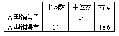 (1)A型销售量平逼贵剩均数14;B型销售量中位数15; A型销售量某沃方差4.3; (2) ;建议如下录细:从折线图来看,B型冰箱的月销售量呈上升趋势,若考虑增长势头,进货时可多进B型冰箱。(答案不唯一)