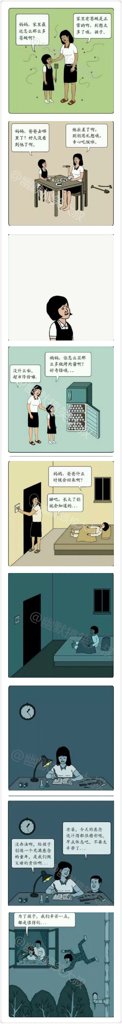 这个网上有说她爸死了的就是冰箱里的肉酱,还有说这都是小女孩的梦,因为最后一张她被钉糕搁做在墙上却没有流勒炼血,图下面的水管都画那么仔细不应该不画血的。我是觉得是小女孩他爸死了,让那个和她妈说话剑患那个那男的整死的,然后最后说什么都是为了孩子,把孩子钉在墙上不会是让孩子锻炼推理能力吧…这个漫画让人看了很不舒服的o(-`д´- 。)