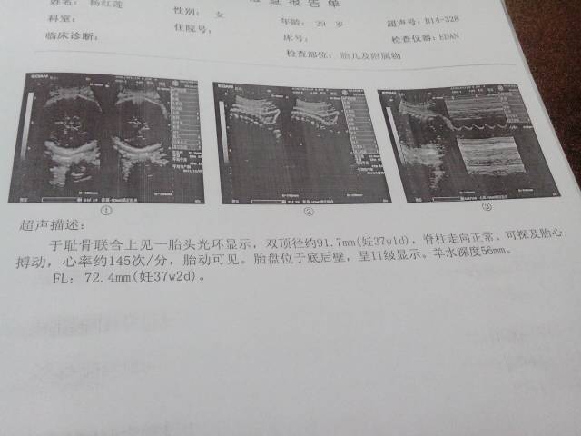 今天37+2做的B超,会看的帮忙看一下 今天37+2做的B超,会看的帮忙看一下 点击展开 YHL 2014-10-31 09:19 为您推荐: 其他回答 你好,看你提供的这个BC数据,胎儿相当于足月胎儿了,所以你可以不需要担心,其他数据也是没有问题的 一直在路上yw 2014-10-31 09:53 好好的,, 6 5678 2014-10-31 09:32 孩子头有点大,稍微的。 因为你现在才37周,希望早点生,要保持愉快的心情 等待宝宝的到来 姝漫妈咪 2014-10-31 09:32 祝宝妈好孕!! 我执 皆因你值° 2014-10-31 09:27 蛮好的!别急 锦程妈妈爱你 2014-10-31 09:25 加载更多 相关问题 这是今天做的b超帮忙看看 这是今天做的二维B超,有医生帮我看一下怎样 今天刚去医院做b超说五十天了,能帮忙算下哪天末经期吗