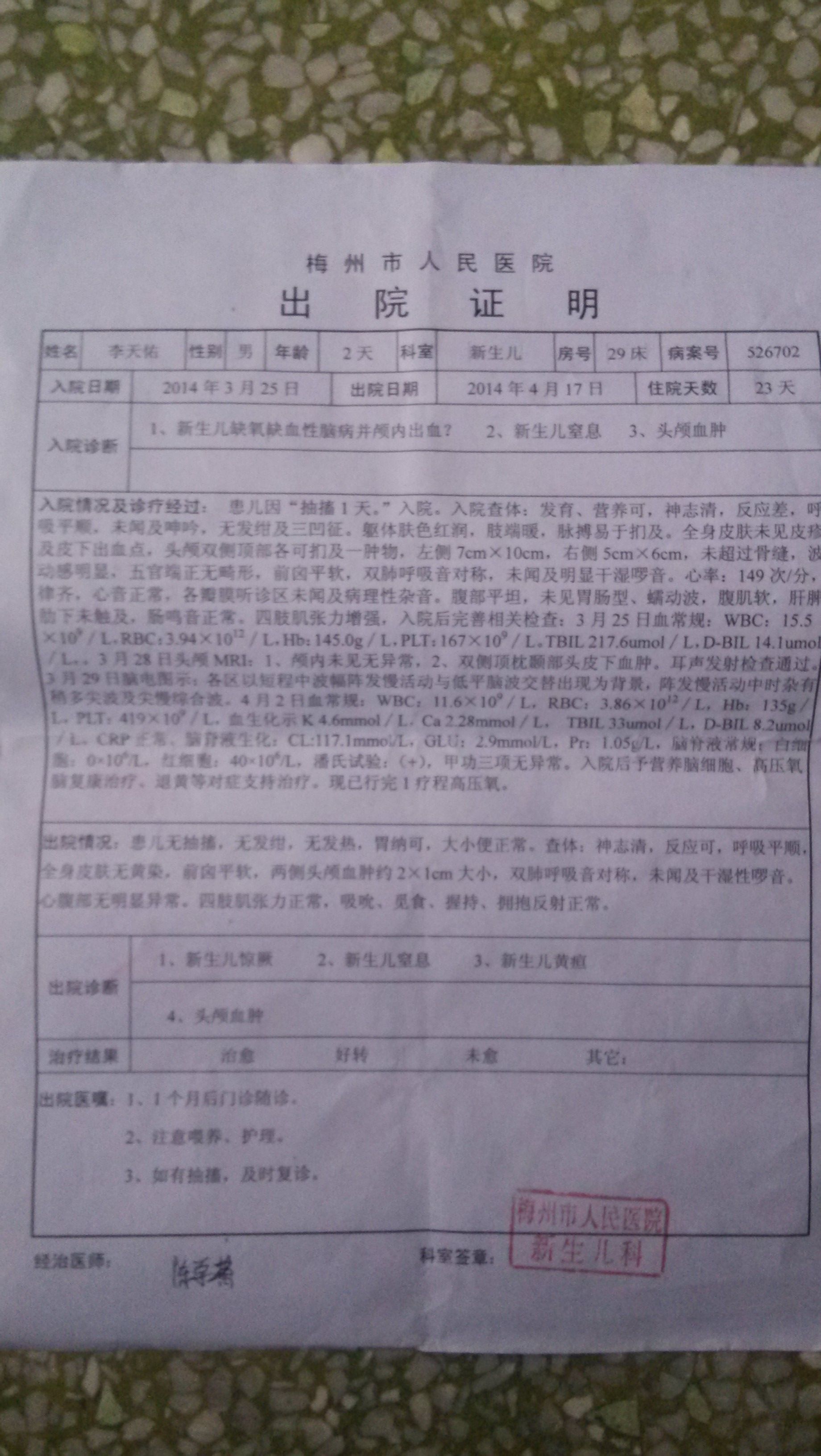 出院报告 求新生儿科专家诊断一下 万分感谢 请各位专家看看我儿子的出院报告。现在全家都很担心。 点击展开 娇娇女360 2014-04-24 18:13 为您推荐: 其他回答 病情分析: 您好;这情况考虑是正常的, 指导意见: 建议您平时让宝宝多喝水,保证睡眠,祝宝宝健康成长 赫亦凝_2Vv0 2014-04-24 21:02 相关问题 白带检查诊断报告 求懂的人帮忙看看 万分感谢 新生女宝一枚,五行缺金,爸爸姓高,求好名字,万分感谢 新生儿科专家咨询医生,您好,首先祝您新年快乐,工作顺利!我
