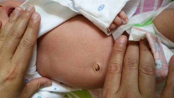 新生儿27天,腹部这样正常吗?很鼓,还有些硬,能看见肚皮上的青色血管