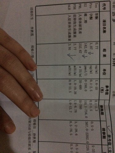 今天激素检查出来 医生让我按照排卵期那一列对照自己、哪位医生帮我看看! 点击展开 匿名用户 2014-01-21 14:50 满意回答 指数偏低,有卵巢多囊的可能 匿名用户 2014-01-21 14:58 宝宝知道提示您:回答为网友贡献,仅供参考。 相关问题 检查性激素6项都正常了,为什么会让在排卵期吃黄体酮呢? 我五个半月了,今天检查了一个什么T3T4和什么甲状腺激素的,都不合格,医生建议我去大医院检查,我想 请哪位医生帮我看看,我现在怀孕12周,7周的时候做了甲状腺检查,其中促甲状腺激素(TSH)是3 5