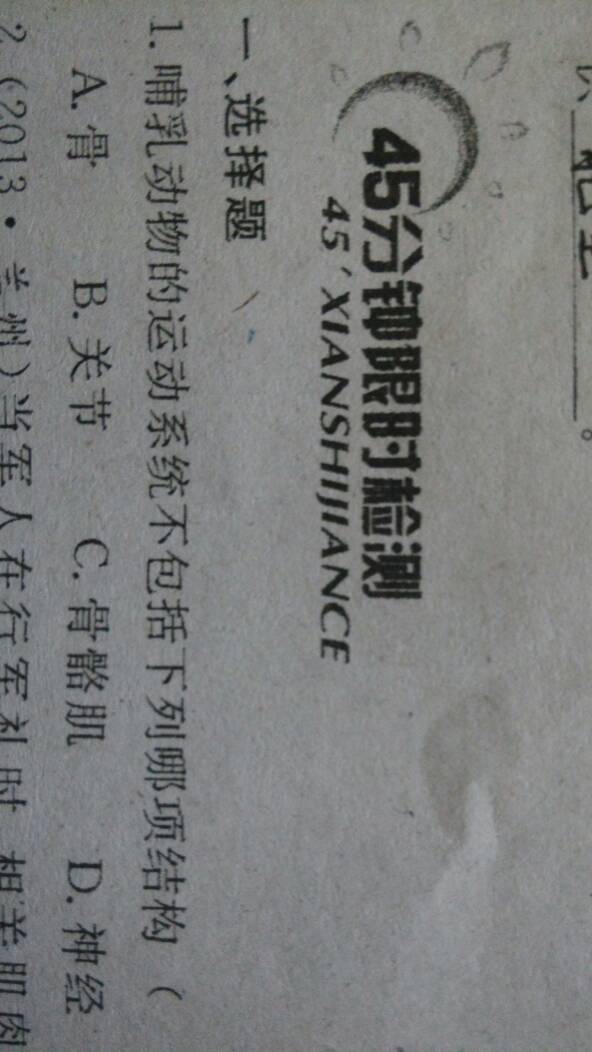 哺乳动物的运动系统不包括下列哪些结构?A\骨 B\关节C\骨骼肌D\神经 点击展开 匿名用户 2014-10-07 12:28 满意回答 D 匿名用户 2014-10-07 12:29 宝宝知道提示您:回答为网友贡献,仅供参考。 为您推荐: 其他回答 C 匿名用户 2014-10-07 12:35 骨骼肌 匿名用户 2014-10-07 12:29 相关问题 在哺乳动物的运动系统中,将骨骼肌连接在骨上的结构是 [ ] A.关节&nb… 动物的行为常常表现为各种各样的运动,动物的运动依赖于一定的身体结构,哺乳动物的运动系统是由-和 哺乳动物的运动系统不包括?