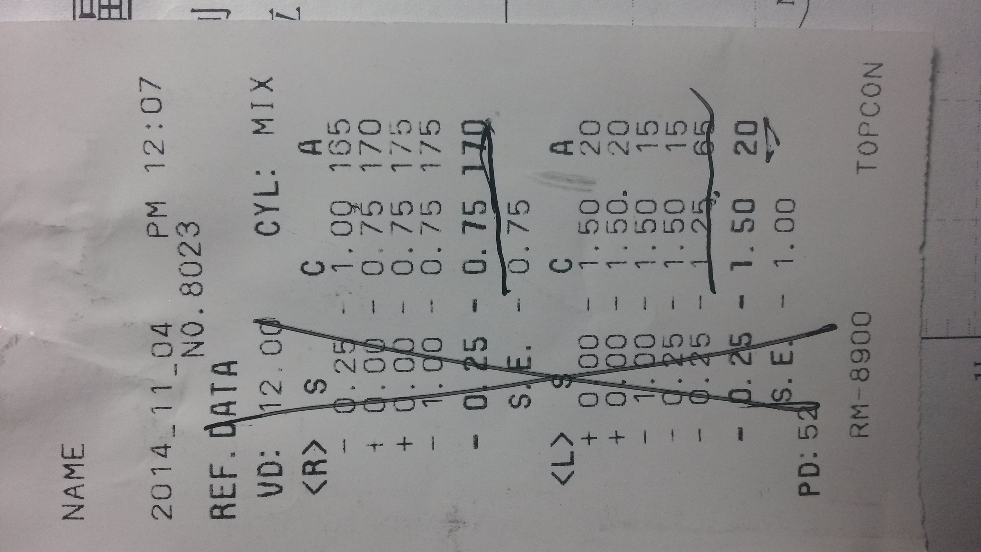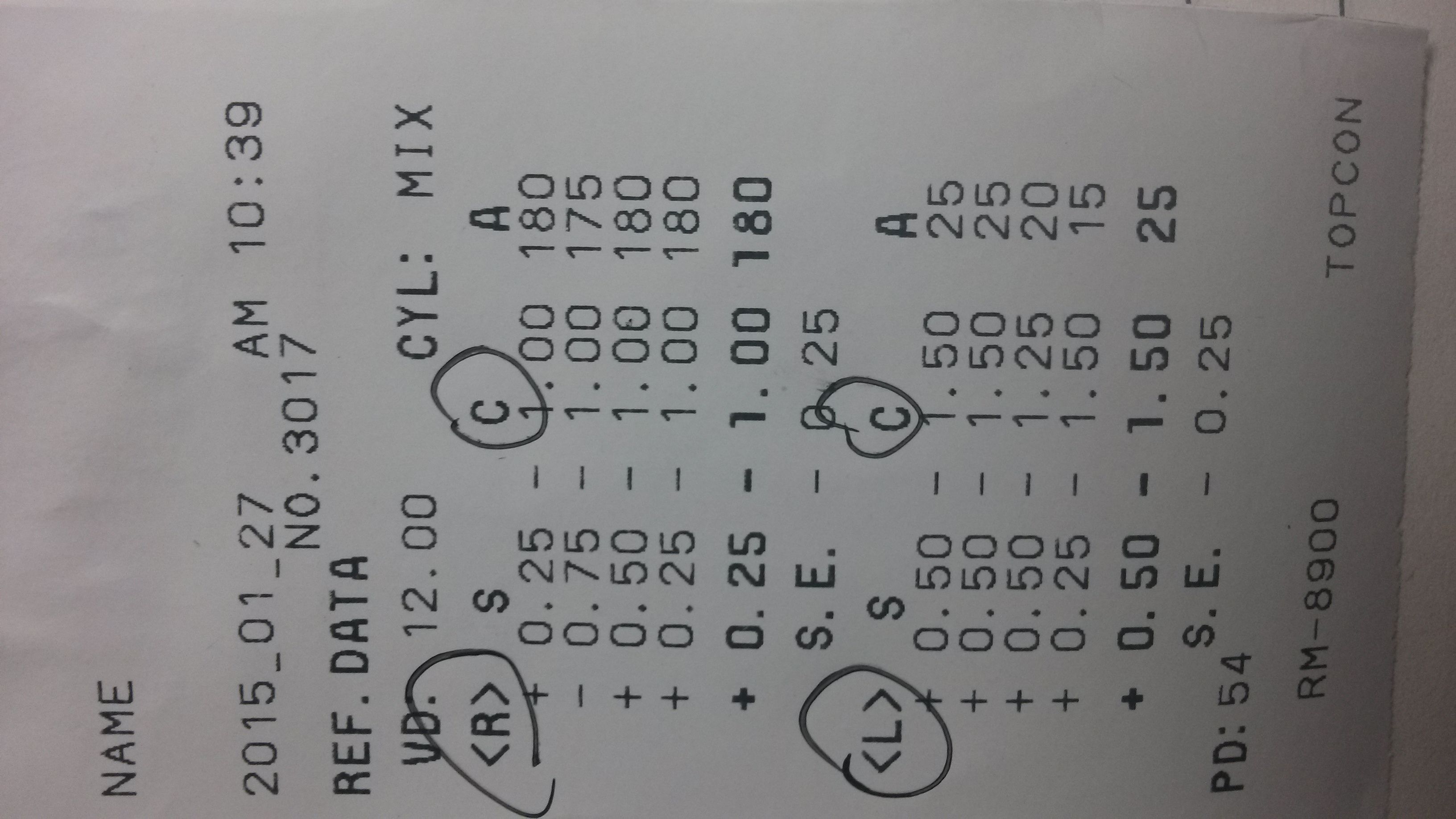 我的小孩差两个月就4岁了,检查出散光后不间断戴了3个月的眼镜,按照医生的要求,今天去复查,结果还是和之前差不多。因为排队的人多,今天和之前的不是同一个医生,他们的解答很笼统且不太一致。我看不懂检查结果(如图,一张是14年11月的和波形图,另一张是15年1月的),希望专家能帮忙解读一下。我想知道孩子的散光多少度?严不严重?日常是否需要一直戴眼镜下去?