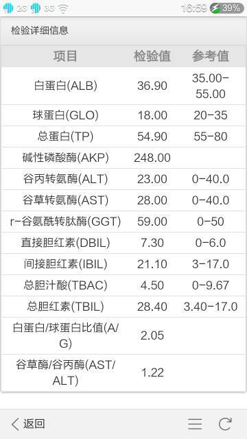 今天去儿童医院复查黄疸,做了磁共振,结果正常,现在肝功能结果出来了,麻烦看得懂的解读下 今天去儿童医院复查黄疸,做了磁共振,结果正常,现在肝功能结果出来了,麻烦看得懂的解读下 点击展开 俊铭妈妈 2014-10-17 17:06 为您推荐: 其他回答 你好,从你提供的化验结果上看,恢复的差不多了,问题不大,建议你不要担心。 羽化翩跹lc 2014-10-17 19:20 蛋白较高,, 高紫茵 2014-10-17 18:19 红素偏高了很多 宝宝乐呵呵 2014-10-17 17:10 是比较低的 宝宝乐呵呵 2014-10-17 17:09 你的蛋白比较高呀 宝宝乐呵呵 2014-10-17 17:09 相关问题 宝宝25号黄疸值24送儿童医院治疗30号探视做了磁共振做完主治医生下班了,今天打电话询问情况医生介 宝宝25天,医生确诊巨细胞病毒感染,怎么治疗?徐州儿童医院说肝功能损坏,腹水约220左右,只能采 婴儿支气管肺炎住院十多天肝功能受损在南充市医院查不出原因,医生建议去重庆儿童医院,我想问成都华西医