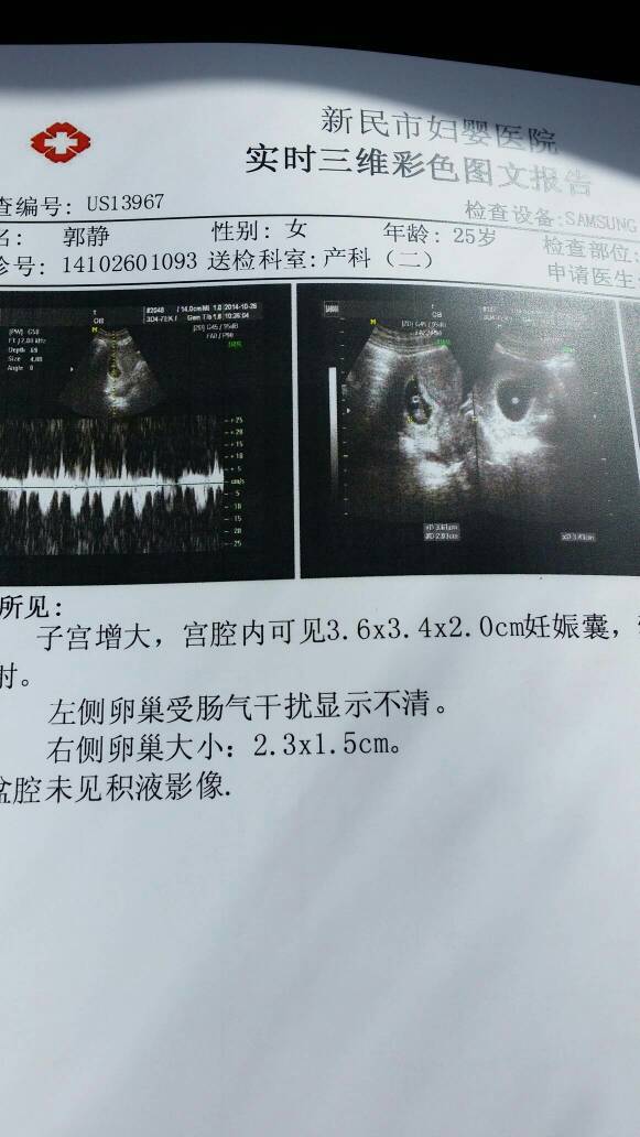 刚做完彩超,医生出去吃饭了,谁给看下 刚做完彩超,医生出去吃饭了,谁给看下 点击展开 188*****749_GMgA 2014-10-26 12:39 为您推荐: 其他回答 你好,属于正常的早孕,大约在50多天吧,建议到4个月在检查。那是就到看宝宝的发育了 天使7737 2014-10-26 20:24 有胎芽,胎心搏动就正常, 峻岐麻麻 2014-10-26 12:51 最好等医生上班了问问 好怕→_→ 2014-10-26 12:48 如果有胎心胎芽就说明正常的,如果宝妈不懂,可以当面问医生 何俊熙麻麻 2014-10-26 12:45 有胎心胎芽吗? ╰ 太阳当空照 丶 2014-10-26 12:43 加载更多 相关问题 怀孕三个月了,天天玩手机,还吐的吃不下去,心里紧张怕不正常!今天去做彩超了,医生说一切都正常 哪 请问一下医生四维彩超能检查出胎儿有心脏病或心脏缺陷吗