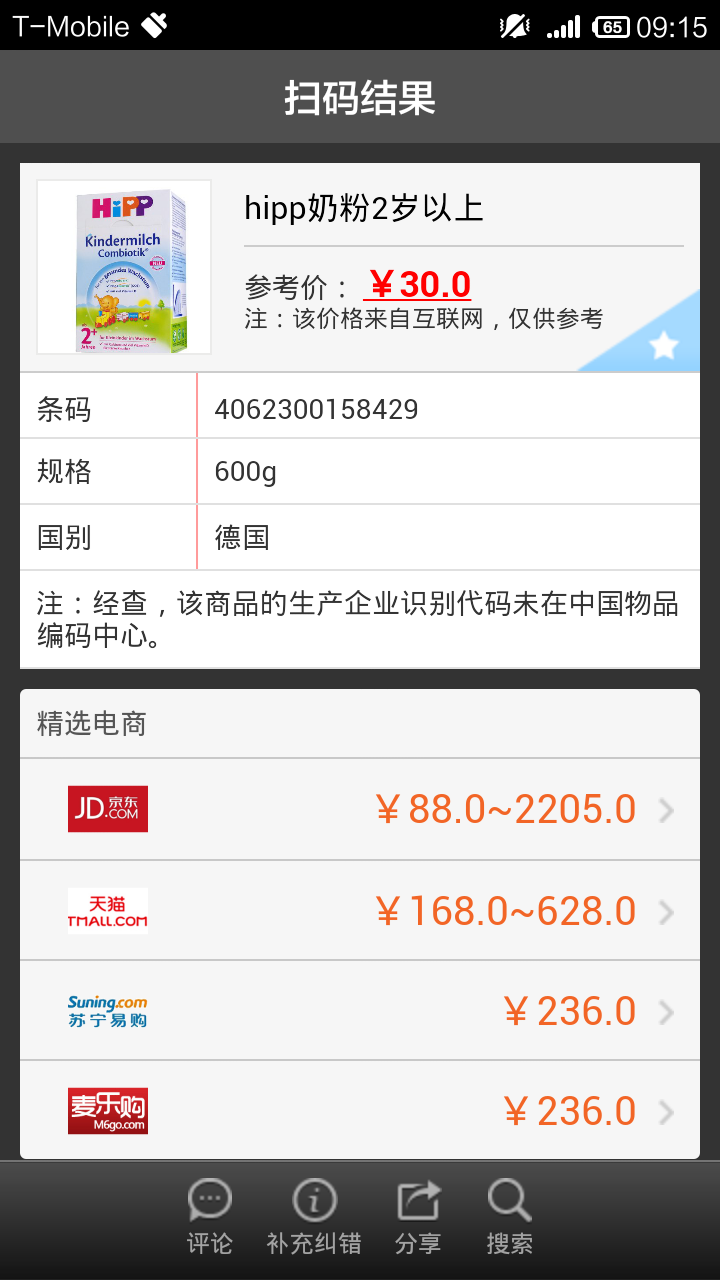 德国喜宝Hipp奶粉600g多少钱一盒? 朋友说是纯进口的,说一百多一盒,但是我用二维码扫描了一下才管30元!到底这中奶粉多少钱一盒啊? 点击展开 匿名用户 2015-02-25 09:28 满意回答 170左右 板瑛瑶_KPhV 2015-02-25 09:29 宝宝知道提示您:回答为网友贡献,仅供参考。 为您推荐: 其他回答 您好,不同的渠道价格不同的,扫码软件是系统录入的问题,并不是辨别的方法,希望可以帮助到您、 干立诚_rhjP 2015-02-25 09:47 相关问题 w家德国喜宝600g奶粉怎么没了 德国喜宝Hipp 三文鱼土豆胡萝卜泥怎么样 德国HiPP喜宝益生菌低乳糖/无乳糖/腹泻奶粉1岁以上