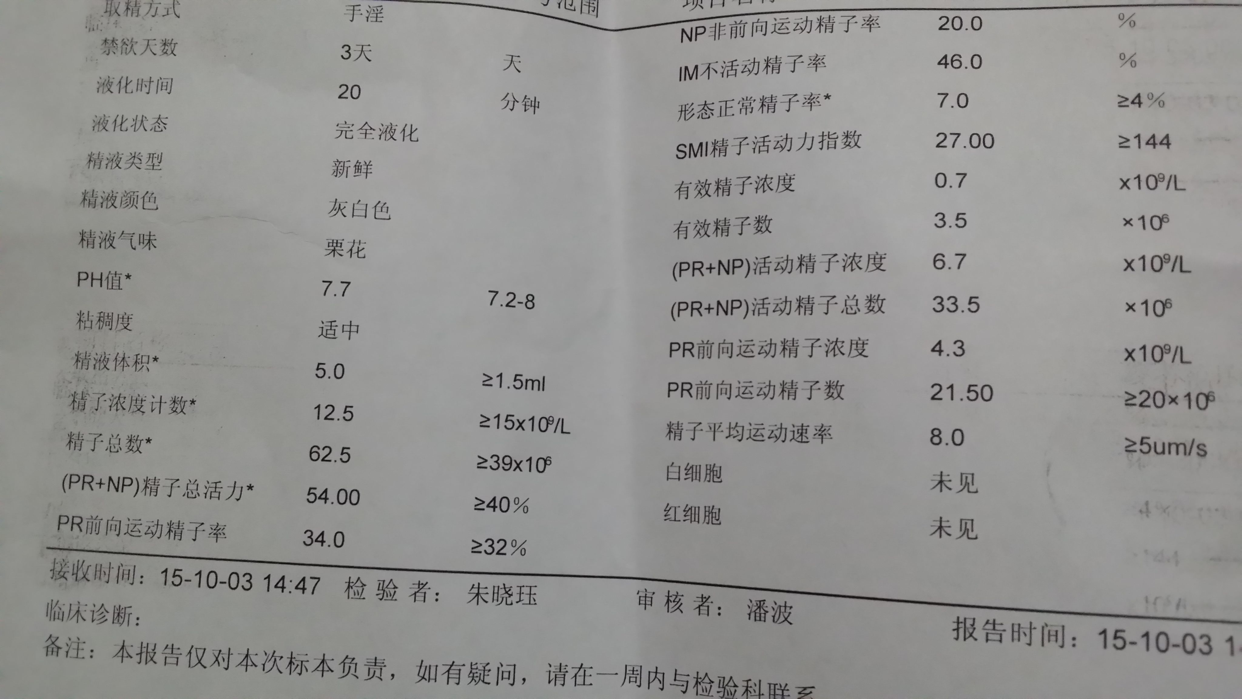 各位看看我的这张精液分析报告单里,我的精液正常吗?如果女方身体也健康的话怀孕的几率多大?这张单子哪