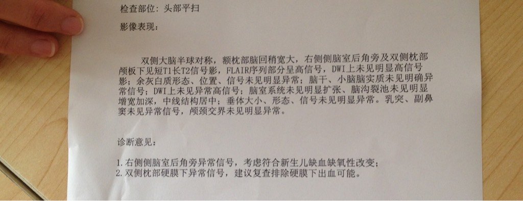 宝宝五天的时候黄疸严重住进了新生儿科,医生做了全面检查除了黄疸,还有颅缝未闭后卤未闭,让做核磁共振