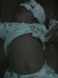 我家宝宝四十几天了,现在注意到她的肚子有点大,是个女孩,不知道有没有事