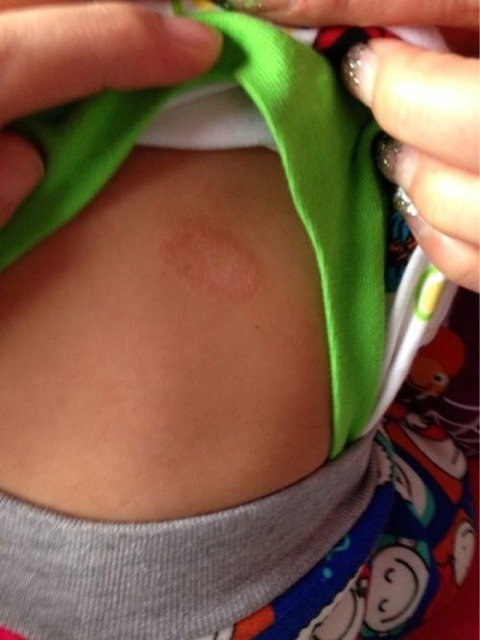 3个月大,半个月前发现身上起一小块像癣一样的东西,洗过澡后发红,干后发白,有起皮,最近发现前胸,特