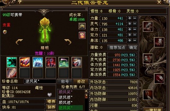 成长率太低了,玩玩还行 灵性点上去内功估计也就5万