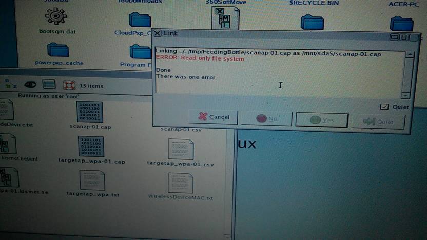 我用u盘启动的奶瓶抓到了握手包,可是不能直接拖拽,为什么呢? 点击展开 匿名用户 2015-01-06 19:32 为您推荐: 其他回答 准备另一个u盘拷贝 匿名用户 2015-01-13 17:55 只读的,肯定不行的 匿名用户 2015-01-06 20:05 相关问题 u盘启动奶瓶后握手包无法导入u盘 握手包在嘛怎么找到?还有我用U盘启动进入奶瓶工具的U盘怎么打开? 奶瓶U盘启动抓到握手包后怎么复制到U盘中?