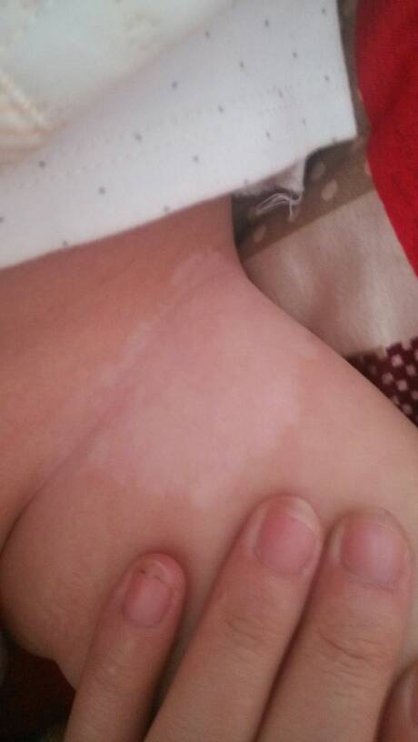 宝妈们,你们的孩子有没有我宝宝这种情况啊!大腿上有一块白,生下来就有,一开始以为是胎记,后来随着腿