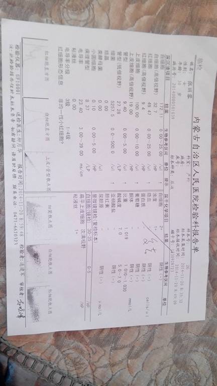请医生帮忙看看尿常规哪儿不正常?医生让复查呢 请医生帮忙看看尿常规哪儿不正常?医生让复查呢 点击展开 ☆☆流星☆☆ 2014-11-24 12:02 为您推荐: 其他回答 指导意见:你好,细菌和白细胞超标,提示有炎症感染。常见原因是泌尿系统炎症引起的,可能是肾脏、膀胱、输尿管等炎症引起的。 ke1008 2014-11-25 14:46 标箭头的都是不正常的~ 唯丶MC 2014-11-24 16:24 加油……… 琼瑶 2014-11-24 15:04 听医生的安全 こ猜不透_zXtN 2014-11-24 14:24 听医生的。。。 润润麻妈 2014-11-24 13:46 加载更多 相关问题 孕22周帮忙看看尿常规复查结果,急 请医生帮忙看看宝宝出生四十二天我的复查结果 谢谢 我想问下,试了早早孕没有怀孕去医院查尿常规也没怀孕,可是这两天感觉肚子有点大,需要专业医生的回答