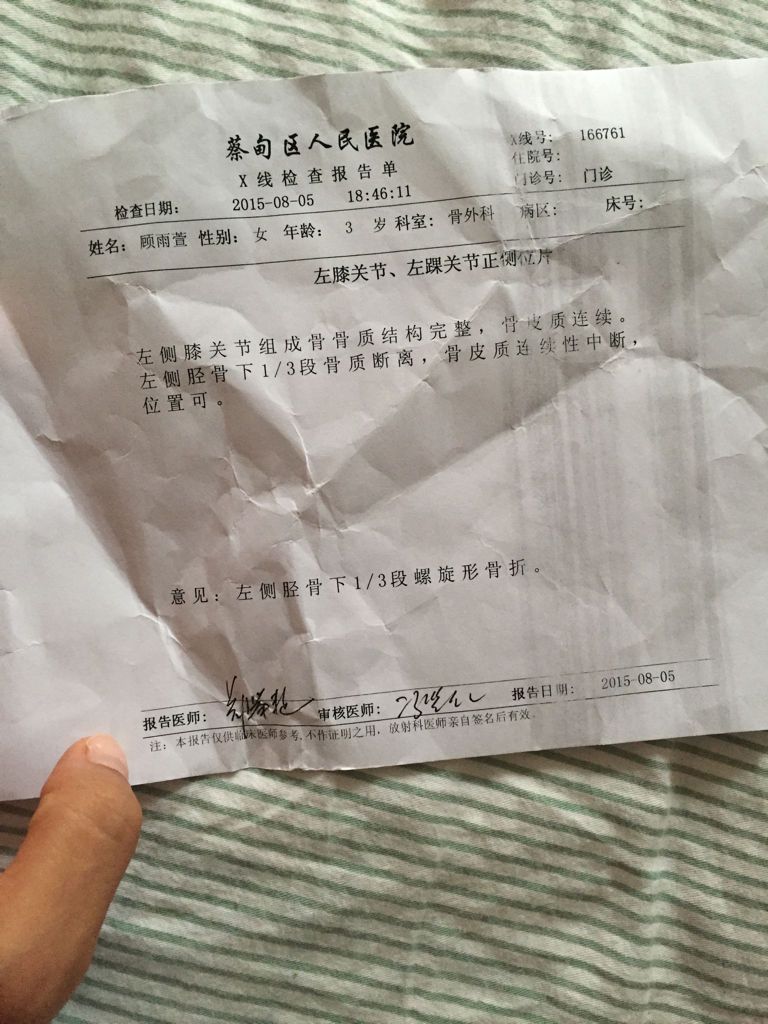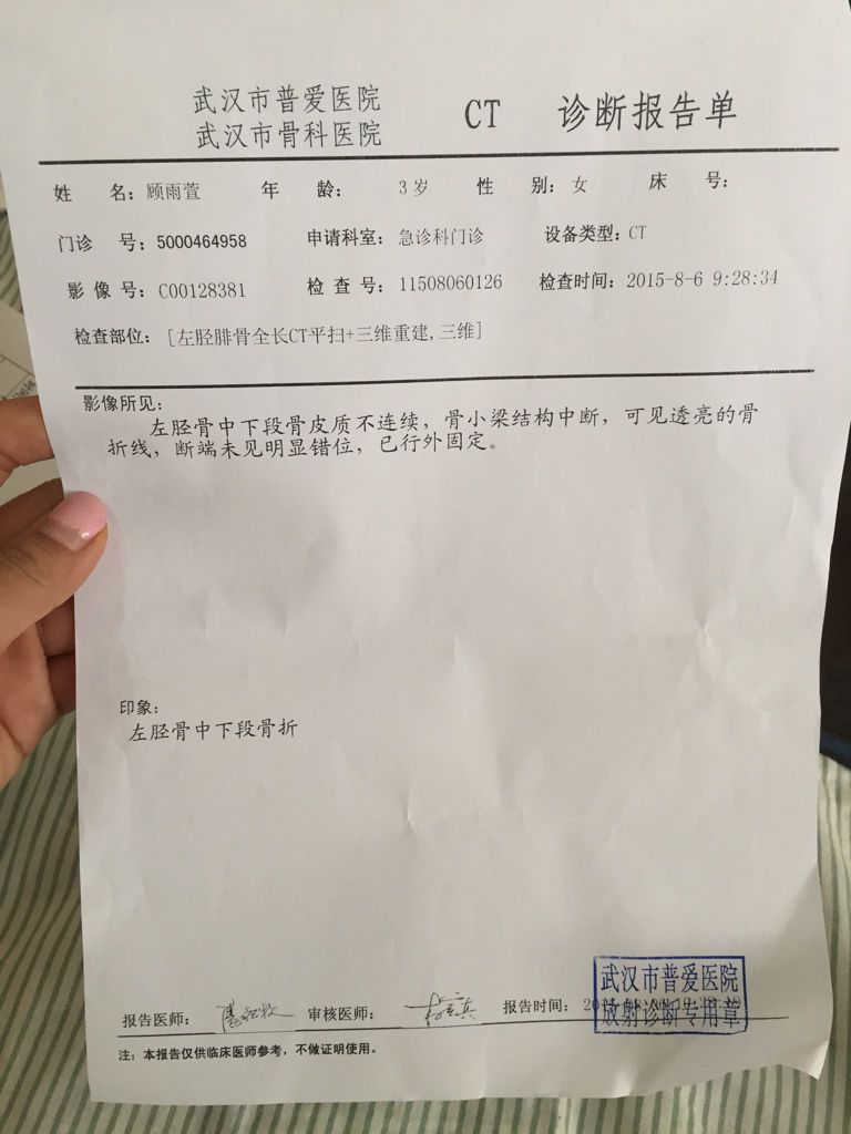 3岁小孩左侧胫骨下1/3段骨质断离,骨皮质连续性中断请问一下楼主们恢复的时候会长错位吗 点击展开 匿名用户 2015-08-13 16:46 满意回答 根据你提吴崇供的图片看,现司半贵在孩子胫骨骨折,一般石膏固苦竖定后,不会错位的, ҽĴ 2015-08-13 16:55 宝宝知道提示您:回答为网友贡献,仅供参考。 相关问题 右侧胫骨下段可见骨折线影,断端稍 错位,余骨质未见明显异常 所示关节关 系正常 宝宝五岁了,昨天下 磁共振检查记录:双膝关节对位好 股骨,胫骨骨质完整… 磁共振检查记录:双膝关节对位好 股骨,胫骨骨质完整…