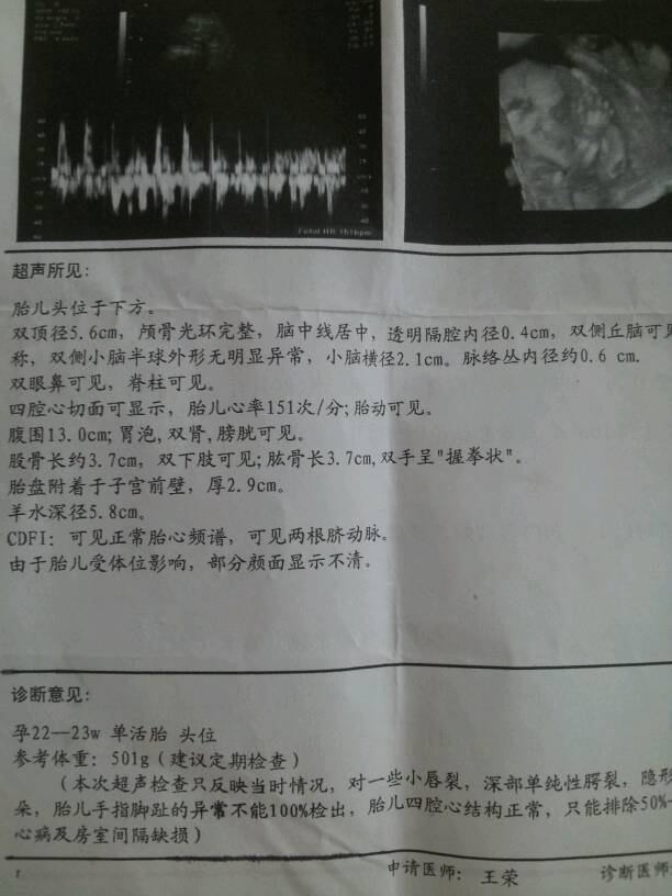 这是我怀孕22周时的四维彩超单,我想知道是男宝还是女宝 点击展开 静静德2 2013-07-10 14:16 为您推荐: 其他回答 您好!通过四维彩超的数据单是看不出男女的。只能通过打B超时的影像看男女。普通的B超影像都能看得出。建议您去找一个有熟人的医院打B超问医生。希望我的回答能帮助到您! 洪凤仙医生 2013-07-10 22:12 相关问题 现在14周加5天,明天想去做四维彩超看看男宝女宝,请问,现在可以看得出来了吗? 我想知道怀孕5个月是第几周? 我现在怀孕7周 我想知道什么时候去医院检查 宝宝的健康?