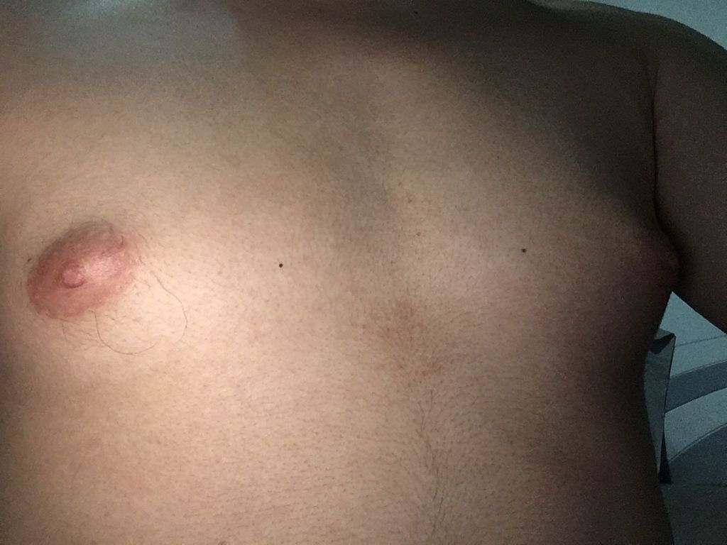 我是男生可是乳房有点大 乳晕跟青春期的姑娘差不多 高二的时候就有点大 上了大学又变大了一点 去检查