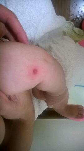 宝宝现在两个多月,刚出生的时候打了卡介苗手臂上留了疤,今晚给她洗澡发张手臂上的疤红了,有点起水泡(