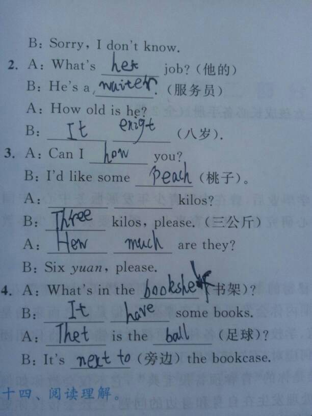 求全部答案,帮小孩检查作业,不会啊,谢谢大神们 点击展开 匿名用户 2014-07-15 14:28 满意回答 ; 匿名用户 2014-07-15 14:44 宝宝知道提示您:回答为网友贡献,仅供参考。 为您推荐: 其他回答 给我财富 匿名用户 2014-07-15 14:48 应该是How many 匿名用户 2014-07-15 14:42 2,his 3.help 匿名用户 2014-07-15 14:41 相关问题 请结婚,生过小孩的母亲给予我一个正确的迷题答案 谢谢!!!!! 我跟我女朋友都同居一年的时间了,还没小孩 我想去检查检查 求大神指点 谢谢了 请问小朋友养兔子有没有什么问题?是小孩,很小的 只有一岁而已!寻求答案!谢谢大家了!
