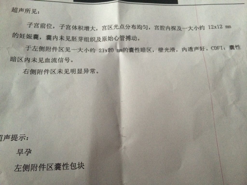 你好,这是38天左右的孕囊大小,从检查看是正常的,这个时间本来就还看不到胚芽及心管搏动的。附件囊肿在孕早期很常见,多为生理的性黄体囊肿,一般只要不是很大,没有症状就不用管它,以后每次检查时留意一下,没有快速长大,没有什么不适就没事,几个月后会自行消退的。