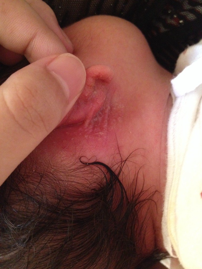 宝宝今天18天了,纯母乳喂养,请问耳朵后面长得什么东西,上面还有点黄黄的 宝宝今天18天了,纯母乳喂养,请问耳朵后面长得什么东西 ,上面还有点黄黄的 。 点击展开 小棉花、他妈 2014-08-22 09:36 为您推荐: 其他回答 您好,根据照片提供的症状来看,考虑耳后湿疹,需要每天用温生理盐水清洗患处,适当涂擦皮炎平软膏或阿昔洛韦乳膏,症状会慢慢改善。 汤旭毅主任医师 2014-08-22 09:45 湿疹引起的,去开点药擦擦 名字就是一个称呼 2014-08-22 09:39 相关问题 我家宝宝出生10天了,今天洗澡发现他脖子一圈及耳朵后面都有那种红色带白头的点点,请问这个是怎么回事 加急问?宝宝今天一个月了,体温37,1请问是否正常,需要怎么吃药?耳朵后面疙瘩还是没有下去也没有变 宝宝出生27天,今天我帮他洗澡一不小心把水弄到他耳朵里面去了,这会不会造成宝宝耳聋啊?