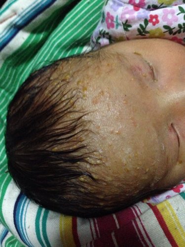 个人估计是胎毒引起的! 给宝宝多喝水,排胎便出来,慢慢会好的! 保险点直接问医生!处理 祝早日康复!