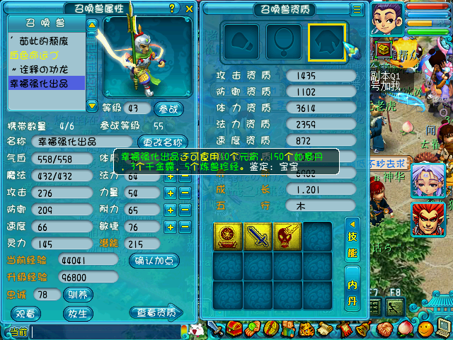 这宝宝你就4力1体加吧,主要还是任务用的多一点吧,PK可以最后拉出来控尸,这个还算串震龟速,但是得配高神套啊,要不浪费啊,内丹就打任务用的迅敏、矫健吧,竖昌概纯PK宝宝不迷用值得培养